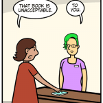 A comic strip about a library.