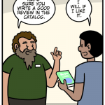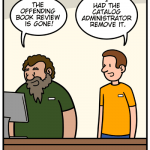 A comic strip about a library.