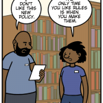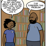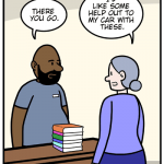 A comic strip about a library.