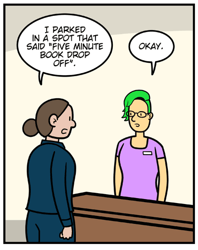 Want to see your library story in a comic? Email it to Gene! If we use yours you get a free print.