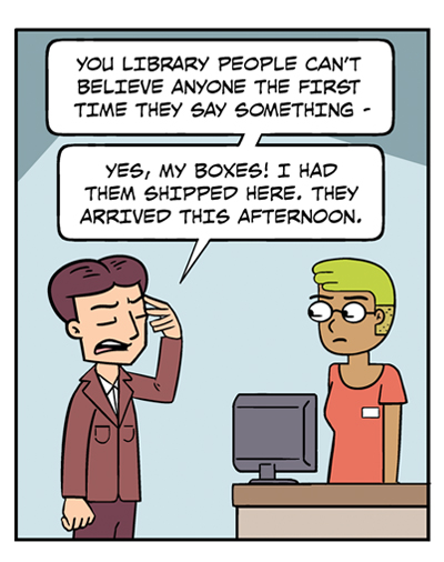 twelve hundred ten Posted on August 13, 2025 at 6:27 am by Gene Ambaum Characters: Jody Share this: Click to share on X (Opens in new window) X Click to share on Facebook (Opens in new window) Facebook Click to share on Tumblr (Opens in new window) Tumblr Click to share on Pinterest (Opens in new window) Pinterest Click to email a link to a friend (Opens in new window) Email Tags One thought on “twelve hundred ten” notStanley says: August 13, 2025 at 9:10 am Did he confuse the library with a FedEx store :{ Reply Leave a Reply Cancel replyYour email address will not be published. Required fields are marked *Comment * Name * Email * Website Save my name, email, and website in this browser for the next time I comment. Δ This site uses Akismet to reduce spam. Learn how your comment data is processed.