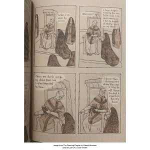 You can see more of Brookes’ work at https://www.gbrookes.com. I highly recommend checking out the Original Art Shop and Gallery to see examples of images from The Dancing Plague and other books.