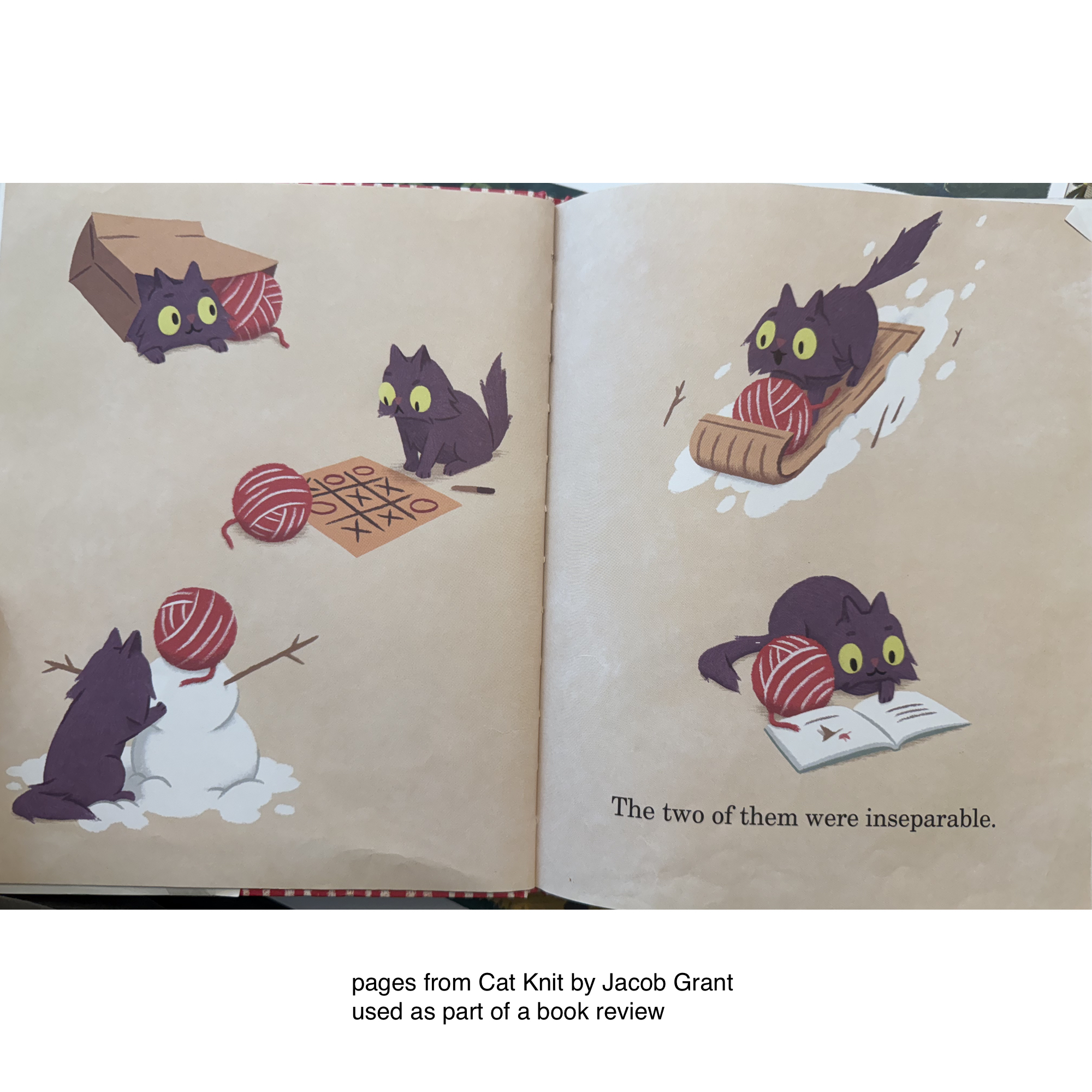Cat and Girl are friends, but then Girl brings home Yarn, and Cat really loves him. But Girl changes Yarn into an itchy sweater that Cat does not like that much… (Grant’s illustrations still have the same life in this book, but they’re drawn in a different style that I also loved.)