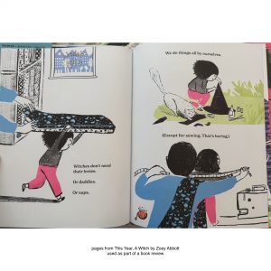 The little girl narrating this tale is done with cute costumes! She’s ready to be a witch! And this is amazing because of the bright colors in this lovely picture book and the surprise ending. (Plus her dad sews. And there’s a cat.)